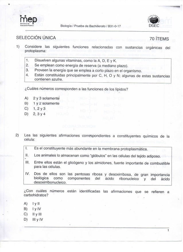 Examen De Biologia Tecnicos 2017